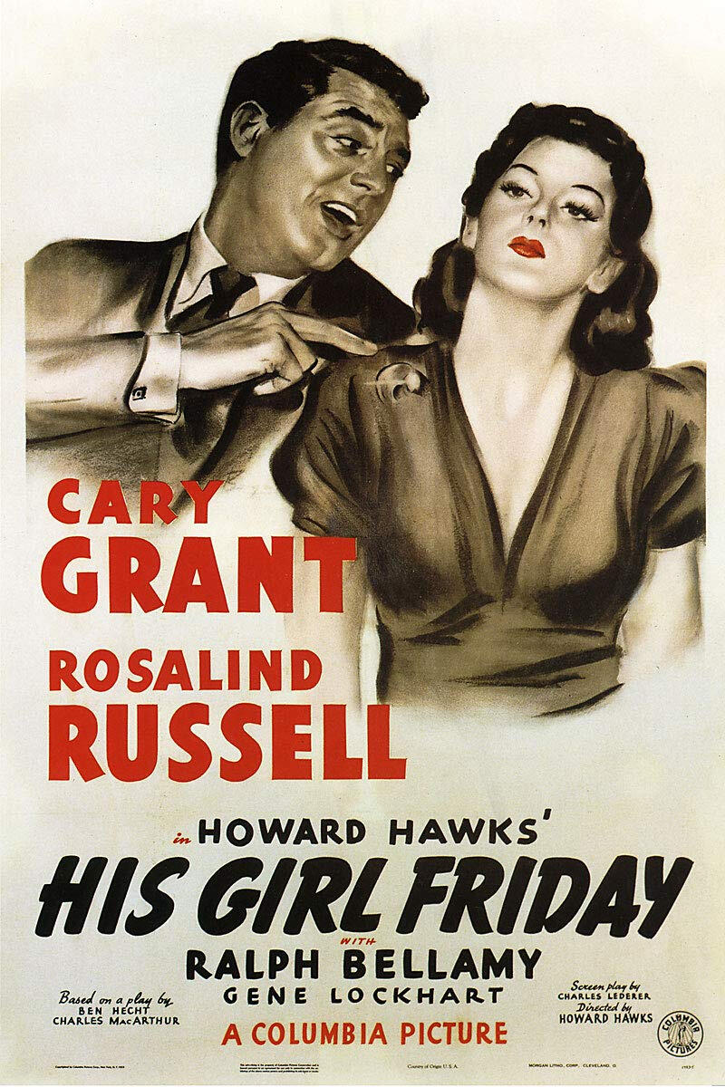 A SCREWBALL/ROM-COM CLASSIC!Howard Hawks’ His Girl Friday (1940) is a lightning-fast screwball comedy starring Cary Grant and Rosalind Russell as battling exes in a chaotic newsroom. Packed with rapid-fire dialogue and electric chemistry, it’s both wildly funny and a sharp satire of media ethics—still one of the most exhilarating films ever made.Watch if you like… screwball comedies, GILMORE GIRLS, quick-witted banter, journalism, Mid-Atlantic accents, Noel Coward, and getting back together with your ex.